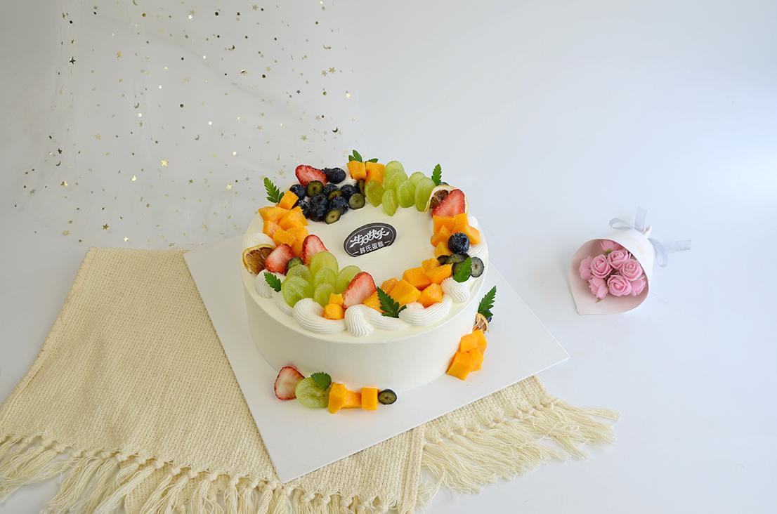 当季鲜果的交响曲阳光青提脆甜开场粒粒爆汁鲜红草莓蓝莓撒落星空宝石四重鲜果在云朵般戚风上起舞,动物奶油轻盈托住每一口幸福。