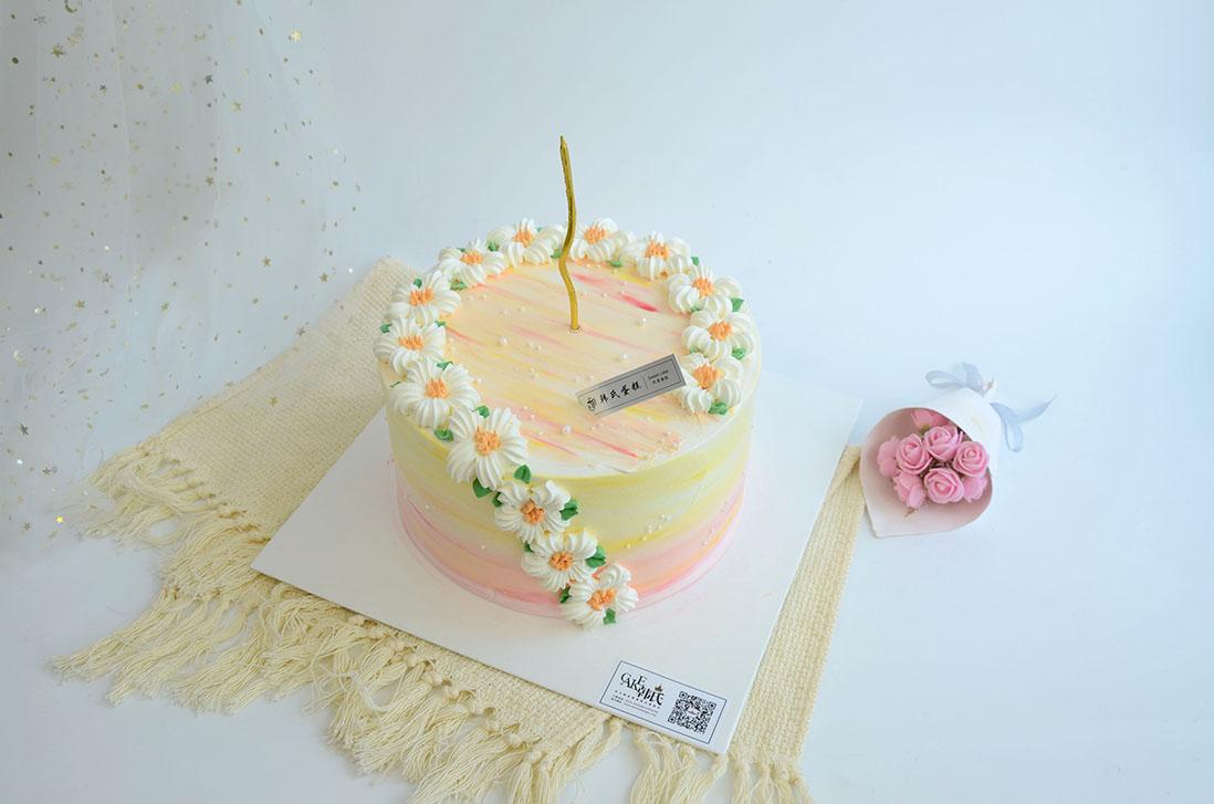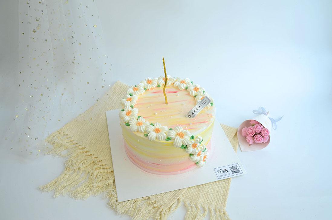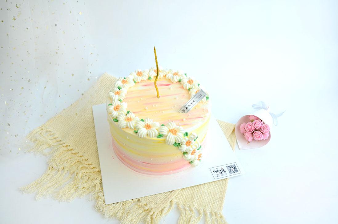 把黄昏揉进奶油里,小雏菊在蛋糕边缘,数着日落时间,每一口都是镀了金边的夏天。