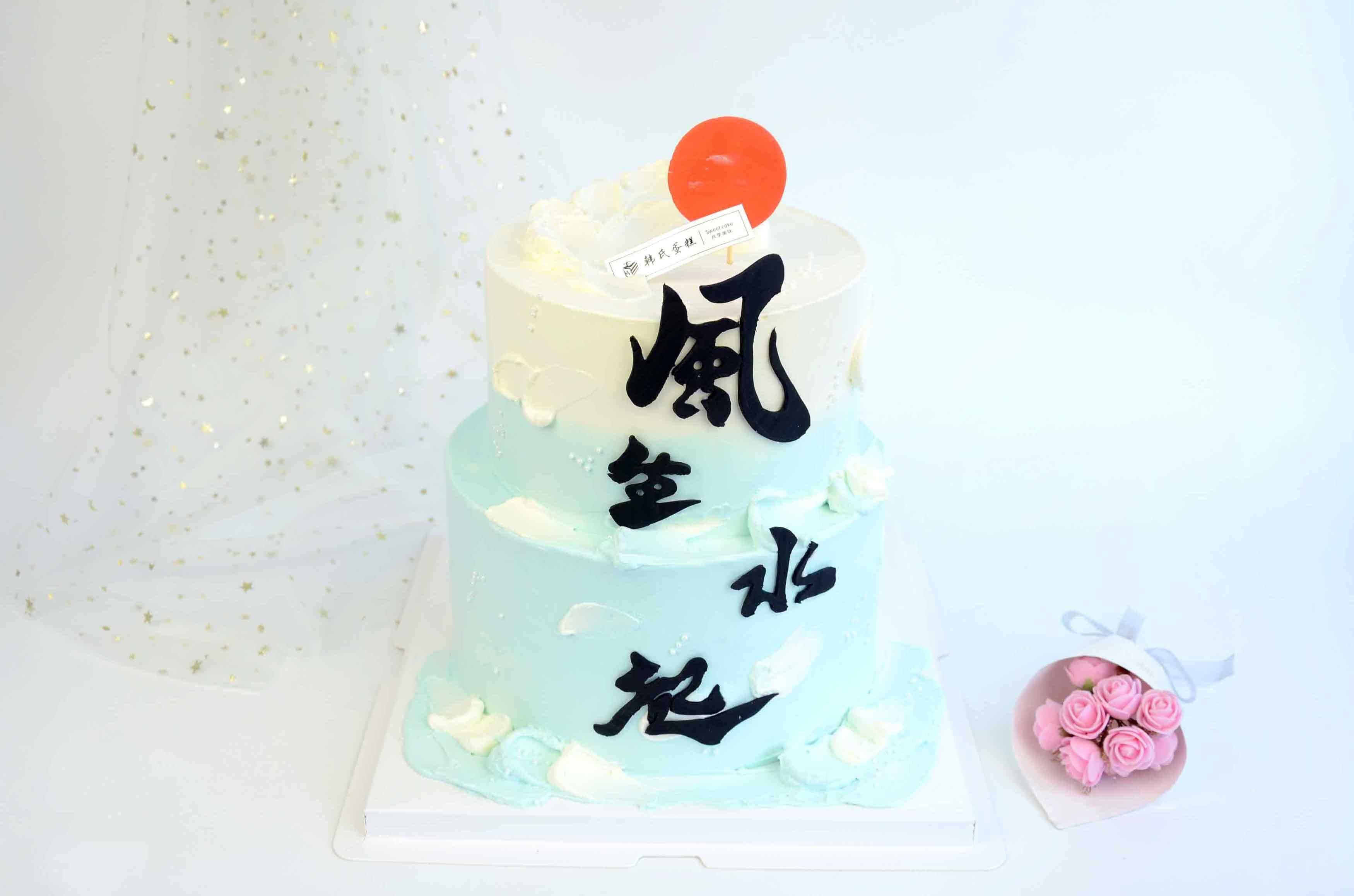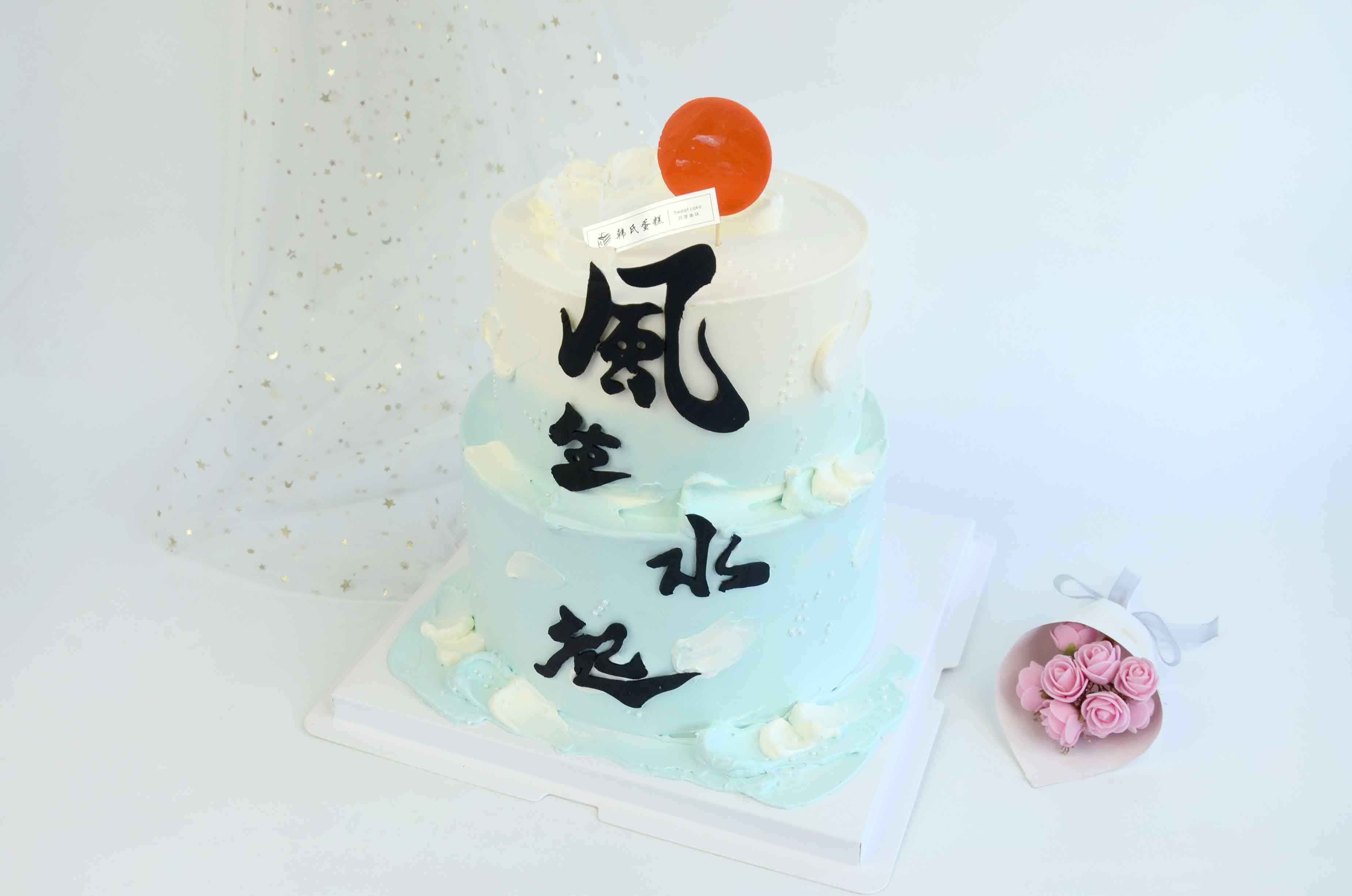 海天之间,太阳跃浪而起,双层蛋糕托起朝阳初升的圆满,愿每一刀切下,都是事业与生活的红火开端,风生水起~