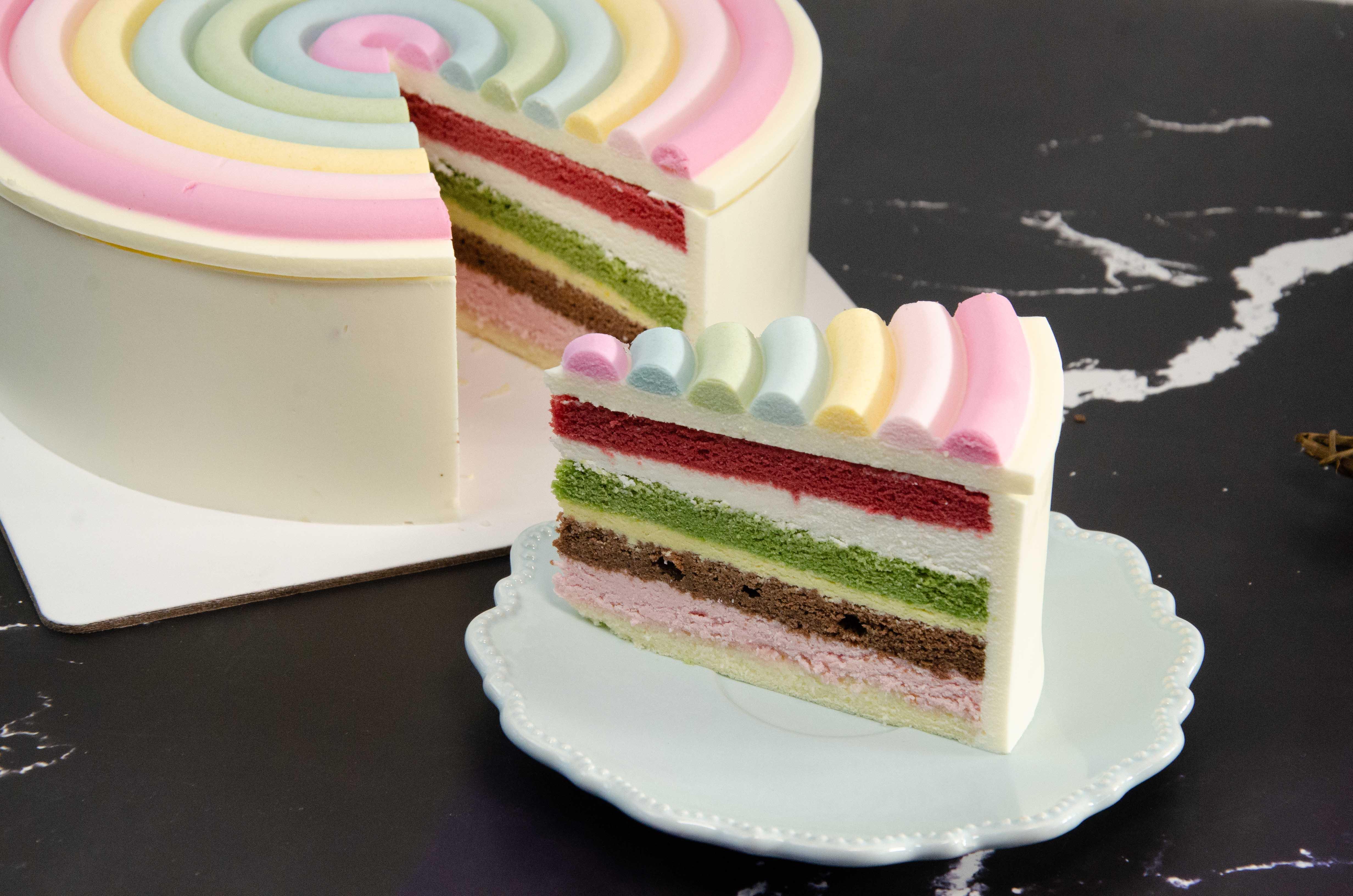 (三河10寸以上(含10寸)至少提前24小时预定)柔软细腻的奶油搭配彩虹饼胚,每一口都甜蜜万分浪漫的外表下是一颗纯真的心,你喜欢我吗?