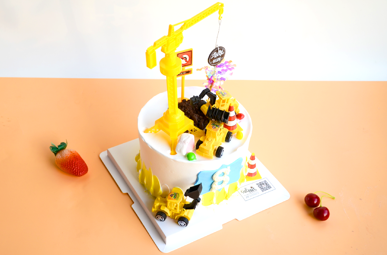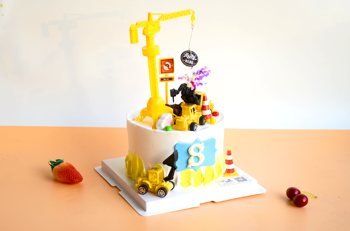 一枚让小朋友‘’欢喜尖叫‘’的土豪工程车款蛋糕,祝宝贝生日快乐、茁壮成长,未来坐拥一票挖机,当个快乐的小富豪